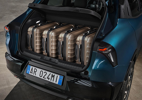 Experience remarkable spaciousness inside the new Alfa Romeo Junior Ibrida with a trunk capacity exceeding 400 liters. "